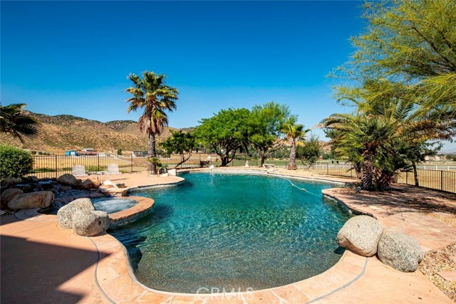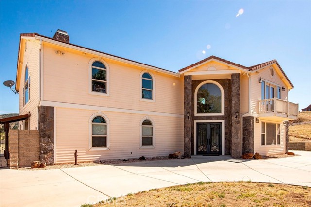 Amazing estate home on 15 useable acres in picturesque leona valley. Located on a 5208sf main house with oversized 3 car garage and 3293 detached building with 4 car garage & workshop. Approx 10,000sf under roof! You'll love the resort style inground pool with raised spa with waterfalls, palms & mature trees. This multi level home has a warm inviting feel yet lots of windows to take in the breathtaking view. The living/great room features knotty pine ceilings & walls, a floor to ceiling rock fireplace with raised heath & a wet bar with glass block & built in cabinets. The kitchen features a center island, dual ovens & a built in refrigerator. The breakfast nook & the roomy balcony overlook the pool area & the valley. Upstairs is a large master suite with a cozy fireplace, knotty pine ceiling, a private balcony & a large walkin closet. The master bath has dual sinks, an oversized shower & separate spa tub. Also upstairs with a separate staircase is a huge room could be a bedroom or whatever you can image. On the lower third floor is a bedroom with a slider to the pool area and a private bath. There is also a large office which could be another bedroom & a rock walled wine cellar. The house is currently set up with 2 bedrooms but with lots of extra rooms! The indoor laundry room has a utility sink. A mud room leads to an oversized 3 car garage. Plus the detached building! It matches the style of the original house. You enter thru dual iron doors. An amazing building! A rock fireplace that spans from the first floor all the way to the ceiling is the centerpiece of the space. There is a kitchen area, a lovely bathroom with an oversized shower. Dual sided wood staircase has a landing in the middle leads to a large loft a& then a balcony around the perimeter on 3 sides. Attached is a 4 car garage and a workshop with builtins. A long paved driveway leads to the house. There are mature trees for shade. & a couple of horse buildings. So many options here! Don't miss it!
