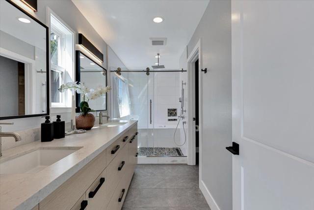 Welcome to this stunning fully expanded and remodeled house in 2020. Offering a perfect blend of luxury, comfort, and thoughtful design, this exceptional residence is sure to impress. This home features soaring ceilings and expansive windows, filling the space with abundant natural light. The open concept main floor offers a spacious living room, family room, and formal dining area. The gourmet kitchen features an oversized island, quartz counter top and premium appliances. A private ensuite bedroom on this level is ideal for guests. Three bedrooms and a dedicated home office upstairs. The impressive primary suite includes a generous walk in closet, an extended double sink vanity, luxurious bathtub and shower, creating a true retreat. The professionally designed and meticulously maintained backyard is a tranquil oasis, featuring a serene waterfall and pond, a dedicated BBQ area, raised garden beds, fruit trees, and a variety of ornamental flowers. Nestled in a peaceful cul de sac, this home offers tranquility without sacrificing convenience. Great schools, Plazas, grocery stores, restaurants, Costco, and a golf course just minutes away, with easy access to Highways 880, 680, and 101 for effortless commuting. Don't miss to own a thoughtfully upgraded home in a prime location!