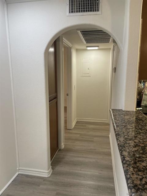 "Amenities Galore!" Must see! Studio one of a kind with bonus room can be used as office. Enjoy the pool or 5 minute ride to the beach! Washer and dryer stackable in closet. Private porch area & beautifully designed kitchen area. Dishwasher & Microwave in unit Parking 2 Reserved 1 covered & 1 uncovered Gym for tenants makes this a rare find in this price range. Room dimensions may not be exact.