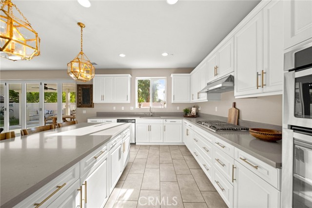 The main level offers a formal dining room, half bath, and gorgeous entry wainscoting detail that opens into an expansive living area. The open concept kitchen features a large quartz island and seamlessly connects to the living room, where folding glass doors lead to a stunning backyard. Enjoy a covered patio, fire pit, and extended side yardperfect for outdoor entertaining and relaxing. Upstairs, the spacious loft with custom built ins provides the ideal space for a media center, home office, or playroom. A 3 car tandem garage offers ample room for vehicles, storage, or a home gym. The home also features paid off solar, providing energy efficiency and long term savings. As part of the Roripaugh Ranch community, enjoy resort style amenities including a clubhouse, pool/spa, kiddie pool, fitness center, two parks, pickleball courts, walking trails, and 24/7 gated security. This home offers the perfect blend of luxury, functionality, and community living!